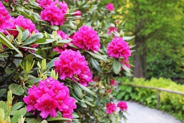 Zgornji angleški park v Arboretumu Volčji Potok je cvetoč samo v maju. Ob robu gozda, pod mogočnimi drevesi in vzdolž skrivnostno zavitih poti, so posajene skupine rododendronov in azalej, ki vabijo, da se fotografirate z njimi.